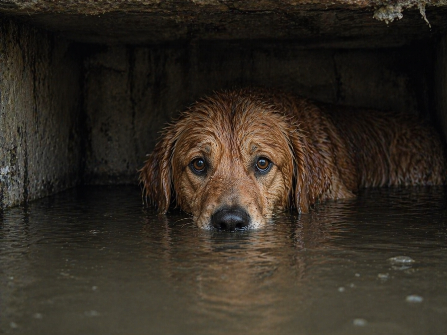 Cerul de după-amiază se colorase într-un violet vânăt, dezlănțuind o ploaie torențială care transformase pârâul local într-un canal violent, învolburat. Printre resturile purtate de ape, un mic terrier îngrozit rămăsese blocat pe o ladă de lemn care se destrăma. Lesa câinelui se agățase de marginea lăzii, însă celălalt capăt al frânghiei era prins în grilajul de fier al unei guri de scurgere uriașe pentru ape pluviale. Pe măsură ce nivelul apei creștea, lada începea să fie purtată spre vârtej, iar frânghia se scurta cu fiecare metru parcurs. Fiecare val al curentului împingea animalul tot mai aproape de întunericul zgomotos al sistemului de drenaj.