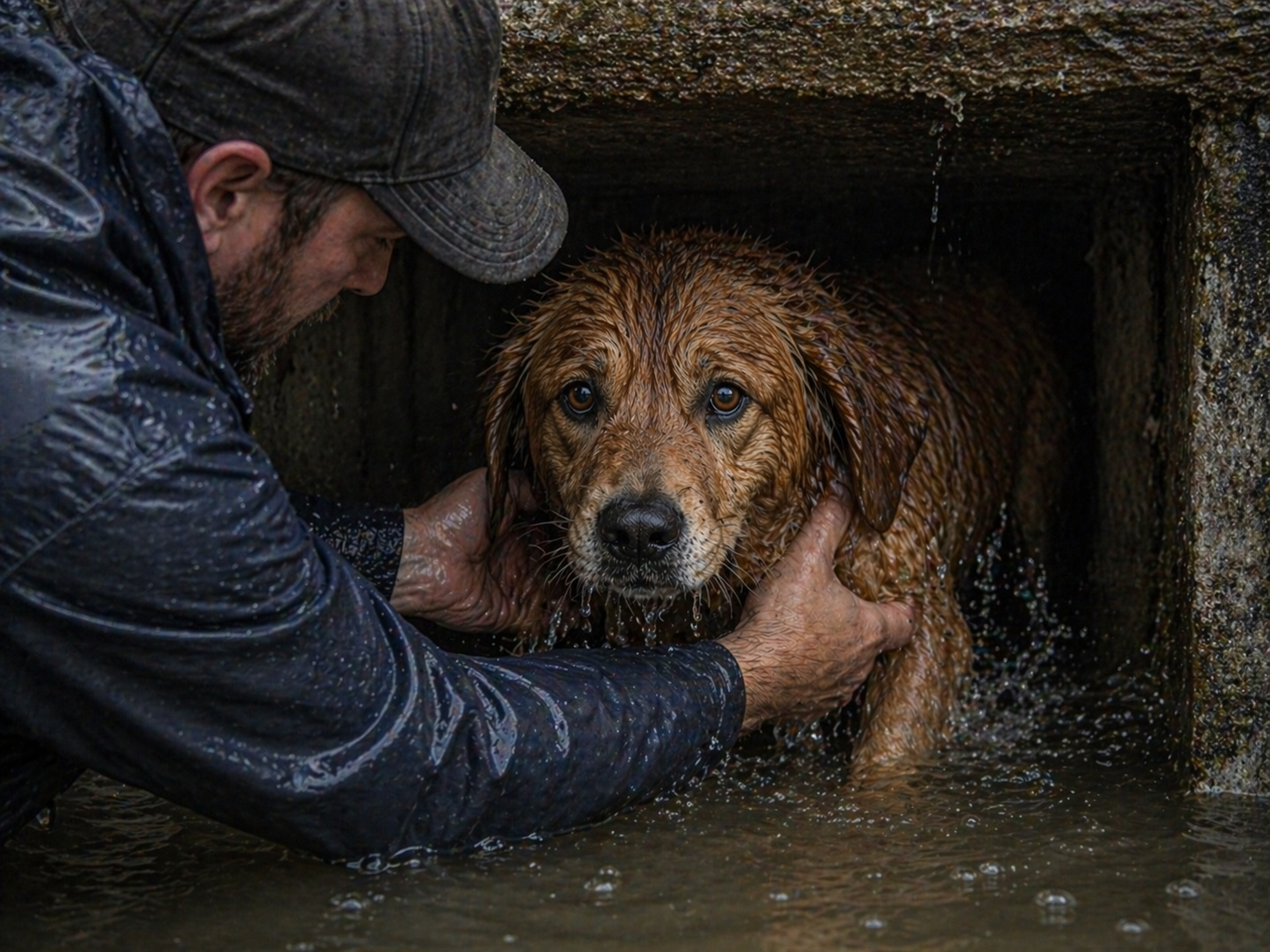 În siguranță pe iarba îmbibată de ploaie, Mark a rămas câteva clipe fără suflare, în timp ce ploaia începea să se domolească într-o ceață ușoară. Câinele, ud și tremurând, s-a scuturat energic, împroșcându-l pe Mark cu apă murdară. Acesta nu a putut să nu râdă — o eliberare bruscă a adrenalinei care îi bubuise în vene. A verificat zgarda câinelui și a găsit un număr de telefon, dar înainte să apuce să-și scoată husa impermeabilă, o mașină a frânat brusc în apropiere. O familie disperată a coborât în grabă, strigătele lor de ușurare răsunând peste parc. În timp ce alergau să-și recupereze animalul, Mark le-a înmânat lesa și s-a ridicat, privindu-i cum apa, odinioară ucigătoare, începea în sfârșit să se retragă.